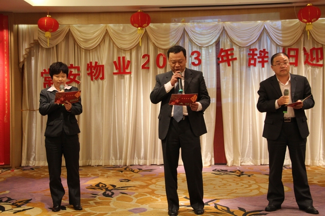 2013年1月25日常安物業(yè)召開(kāi)了2012年度表彰總結(jié)大會(huì)及2013年辭舊迎新晚會(huì)。參加會(huì)議的主要人員有副總經(jīng)理-黃國(guó)義、副總經(jīng)理-蔡愛(ài)花、董事長(zhǎng)-張武。會(huì)議主要對(duì)公司在2012年度的各項(xiàng)工作進(jìn)行了匯報(bào)與總結(jié),并制定了2013年的發(fā)展戰(zhàn)略。會(huì)議中對(duì)2012年度優(yōu)秀員工及先進(jìn)服務(wù)中心及主任進(jìn)行了表彰,并與各服務(wù)中心簽訂了2013年目標(biāo)管理責(zé)任書(shū)。