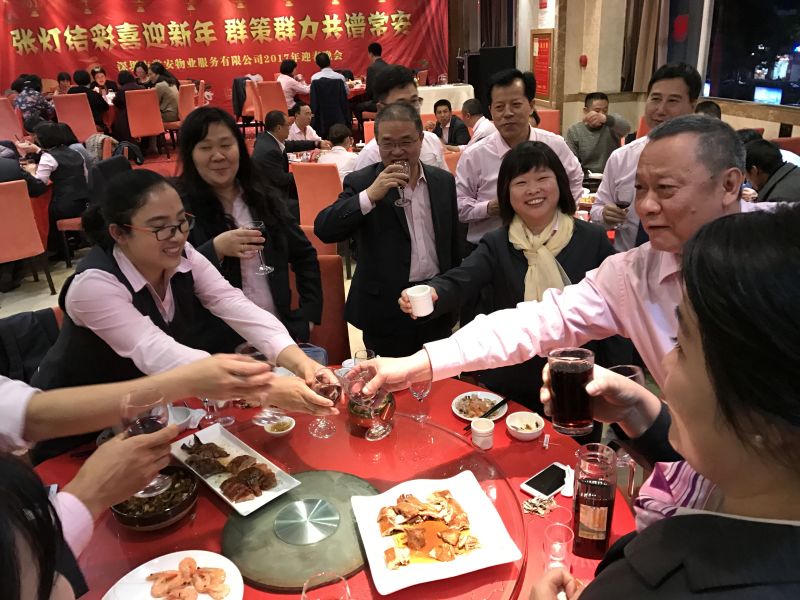 5、在場員工與老員工共進豐富晚宴,晚宴中,公司領(lǐng)導(dǎo)班子端起酒杯到每一桌送去祝福,并向退休老員工發(fā)放慰問津貼。