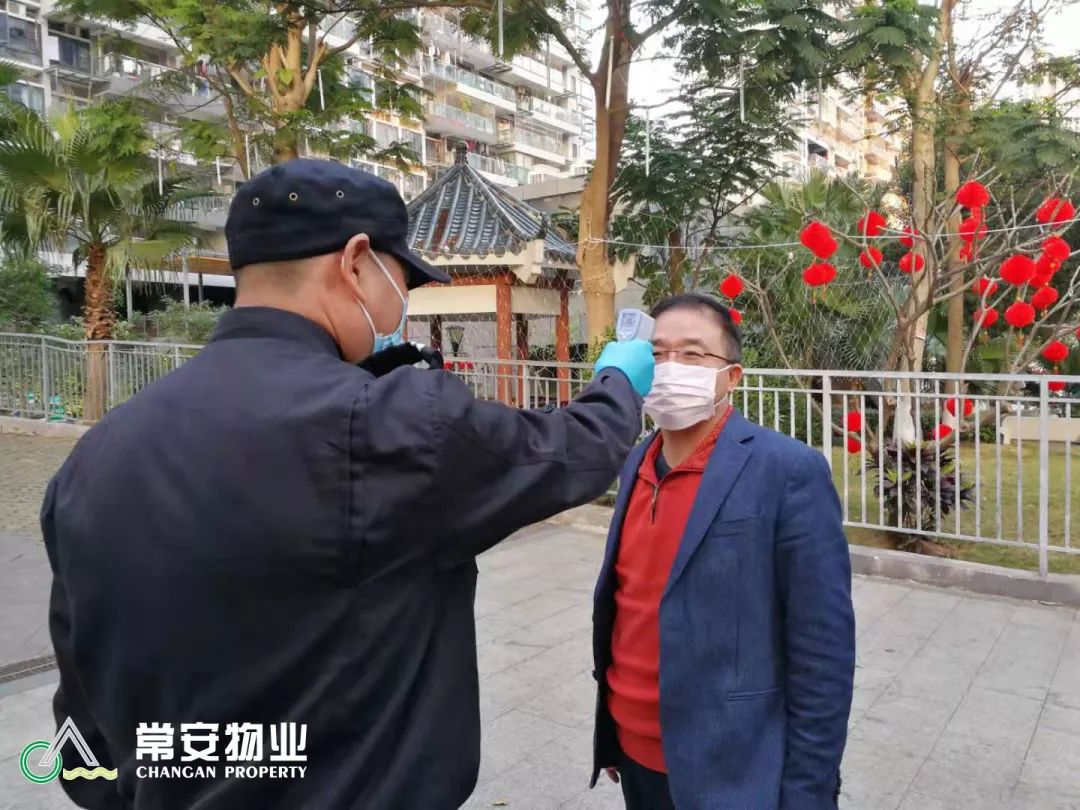 統(tǒng)計(jì)返深人員的信息(包括服務(wù)中心的員工)及外來(lái)流動(dòng)人員情況,做好體溫測(cè)量和記錄。截止2020年1月30日,我司共計(jì)采購(gòu)紅外體溫儀器70余套,對(duì)在管項(xiàng)目業(yè)主/住戶、外來(lái)人員和值班人員共計(jì)測(cè)量體溫五千余次。確保常安物業(yè)管理區(qū)域業(yè)主及公司員工生命安全”