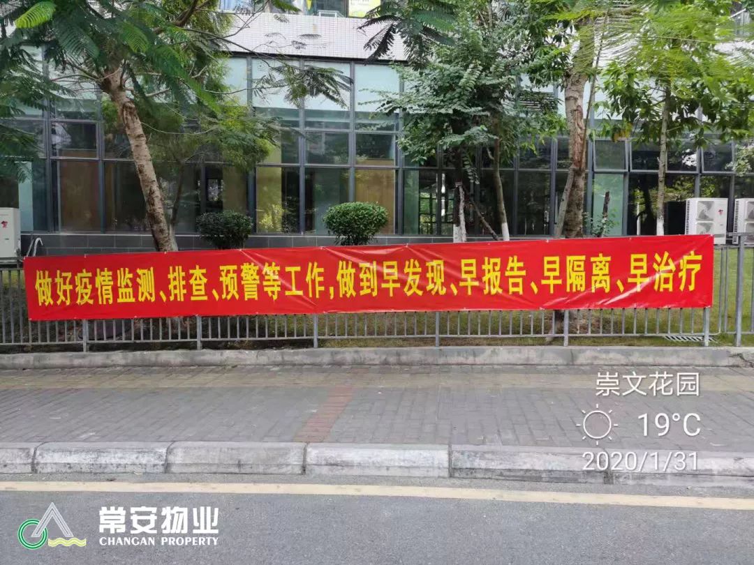 2020年春節(jié)來(lái)臨之際,舉國(guó)上下緊張地投入到新型冠狀病毒感染的肺炎疫情防控工作之中。為配合政府相關(guān)部門做好本次疫情防范工作,作為防控前線,深圳市常安物業(yè)服務(wù)有限公司積極響應(yīng)政府號(hào)召,第一時(shí)間啟動(dòng)應(yīng)急防控預(yù)案,在張武董事長(zhǎng)的領(lǐng)導(dǎo)下,啟動(dòng)一級(jí)響應(yīng)抗擊疫情,堅(jiān)決貫徹落實(shí)政府關(guān)于防治“疫情”工作指示精神,帶領(lǐng)全公司項(xiàng)目主任,迅速采取果斷行動(dòng),切實(shí)加強(qiáng)預(yù)防“疫情”工作,確保各項(xiàng)防范措施到位,力保常安物業(yè)服務(wù)管轄范圍及在職員工沒有一個(gè)“疫情”或疑似病人。我司在抓預(yù)防“疫情”的同時(shí),緊抓各項(xiàng)服務(wù)工作不放松,積極有序地推進(jìn)各項(xiàng)工作的開展。為業(yè)主/住戶和員工的健康平安保駕護(hù)航。