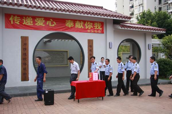 2012年9月12日前?;▓@廣場譜寫了一曲愛的樂章,常安物業(yè)全體員工為救助身患重病的同事紛紛慷慨解囊,捐款相助。常安物業(yè)一名普通的秩序維護員溫?zé)s,因胃出血在近段時間已進行兩次大手術(shù)治療,至今仍在重病監(jiān)護室未脫離危險,但昂貴的治療費已經(jīng)讓本來生活就很艱難的家庭更加陷入了困境。在得知溫?zé)s的情況后,常安物業(yè)在公司內(nèi)部發(fā)起倡議書,倡議得到全體員工的關(guān)注。紛紛在募捐活動中獻上一份愛心,一時間,愛的暖流匯聚了整個前?;▓@,。此次活動共得到愛心款22500元,公司慰問金10000元,總計32500元,公司董事長張武先生將款項親手交給了員工家屬,并希望本次捐款可以解決他們的燃眉之急,并代表常安物業(yè)全體員工衷心的祝愿溫?zé)s同志早上康復(fù)。常安物業(yè)員工倡議愛心捐款員工踴躍捐款善款統(tǒng)計張武董事長講話張武董事長將愛心款轉(zhuǎn)交員工家屬困難員工家屬講話