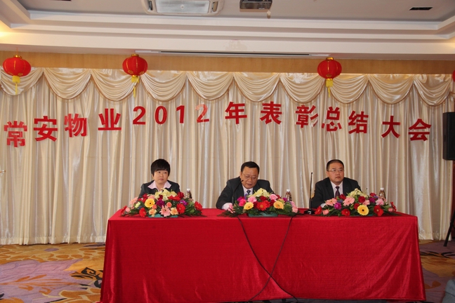 2013年1月25日常安物業(yè)召開(kāi)了2012年度表彰總結(jié)大會(huì)及2013年辭舊迎新晚會(huì)。參加會(huì)議的主要人員有副總經(jīng)理-黃國(guó)義、副總經(jīng)理-蔡愛(ài)花、董事長(zhǎng)-張武。會(huì)議主要對(duì)公司在2012年度的各項(xiàng)工作進(jìn)行了匯報(bào)與總結(jié),并制定了2013年的發(fā)展戰(zhàn)略。會(huì)議中對(duì)2012年度優(yōu)秀員工及先進(jìn)服務(wù)中心及主任進(jìn)行了表彰,并與各服務(wù)中心簽訂了2013年目標(biāo)管理責(zé)任書(shū)。