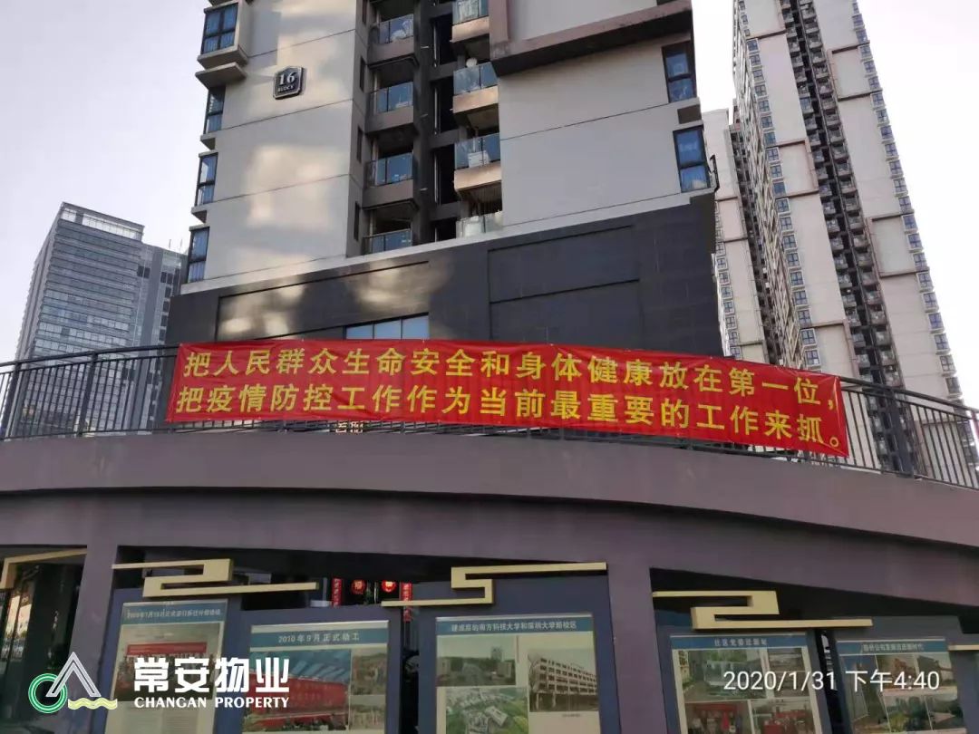 2020年春節(jié)來(lái)臨之際,舉國(guó)上下緊張地投入到新型冠狀病毒感染的肺炎疫情防控工作之中。為配合政府相關(guān)部門做好本次疫情防范工作,作為防控前線,深圳市常安物業(yè)服務(wù)有限公司積極響應(yīng)政府號(hào)召,第一時(shí)間啟動(dòng)應(yīng)急防控預(yù)案,在張武董事長(zhǎng)的領(lǐng)導(dǎo)下,啟動(dòng)一級(jí)響應(yīng)抗擊疫情,堅(jiān)決貫徹落實(shí)政府關(guān)于防治“疫情”工作指示精神,帶領(lǐng)全公司項(xiàng)目主任,迅速采取果斷行動(dòng),切實(shí)加強(qiáng)預(yù)防“疫情”工作,確保各項(xiàng)防范措施到位,力保常安物業(yè)服務(wù)管轄范圍及在職員工沒有一個(gè)“疫情”或疑似病人。我司在抓預(yù)防“疫情”的同時(shí),緊抓各項(xiàng)服務(wù)工作不放松,積極有序地推進(jìn)各項(xiàng)工作的開展。為業(yè)主/住戶和員工的健康平安保駕護(hù)航。