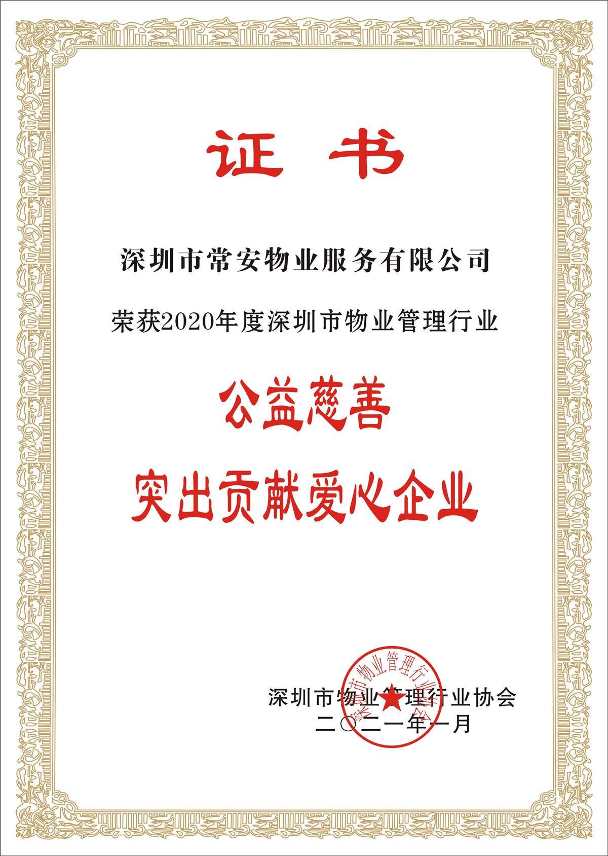 為貫徹國家脫貧攻堅整體部署,響應(yīng)政府、行業(yè)黨委、協(xié)會等有關(guān)部門號召,在發(fā)展企業(yè)經(jīng)營的同時,深圳市常安物業(yè)服務(wù)有限公司弘揚中華民族團結(jié)互助、扶貧濟困的精神,積極履行自身的社會責任。為表彰常安物業(yè)在公益慈善方面的突出貢獻,深圳市物業(yè)管理行業(yè)協(xié)會特授予常安物業(yè)“2020年度深圳市物業(yè)管理行業(yè)公益慈善突出貢獻愛心企業(yè)”榮譽稱號。