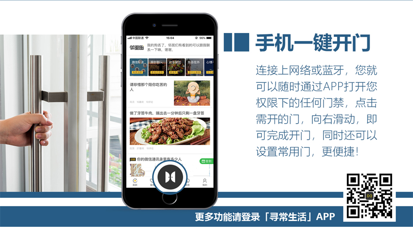 連接上網(wǎng)絡(luò)或藍(lán)牙,您就可以隨時通過APP打開您權(quán)限下的任何門禁,點擊需開的門,向右滑動,即可完成開門,同時還可以設(shè)置常用門,更便捷!